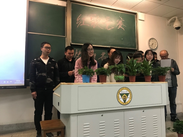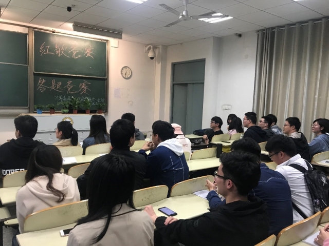 红歌竞赛和知识竞赛在4月14日周日晚上纪忠楼206共同召开,由联合一支部和网络五支部分别承办,研究生辅导员李双老师也来到现场参与活动。