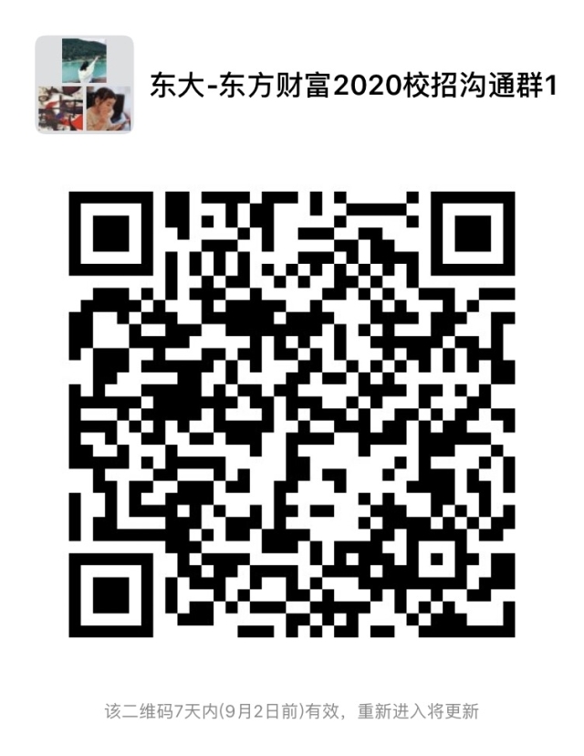 以下为『招聘简章+微信沟通群』,请大家扫描下方二维码,尽快进入东财校招沟通群,了解更多校招信息,期待在东财与大家相遇~