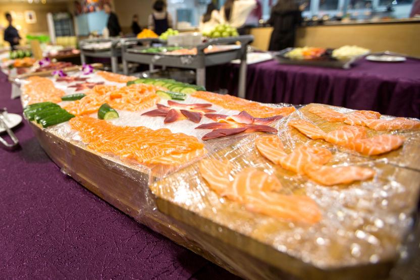 6.公司星级餐厅提供专业膳食搭配的自助三餐,每周及节日均有美食节。
