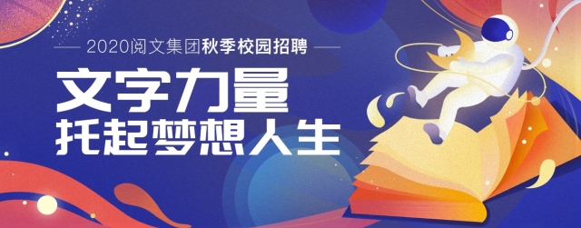 阅文集团秋季校园招聘于8月15日正式启动,面向2020届的应届毕业生,工作地点分布在上海和北京。阅文集团提供丰厚的薪资福利待遇;健全的晋升成长体系;针对不同人群和需求的培训课程;对于校招学生,安排导师1v1,校招生封闭式培训等定向program,帮助学生从学校完美过渡到社会工作中。