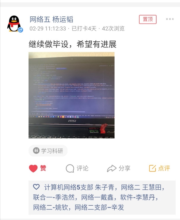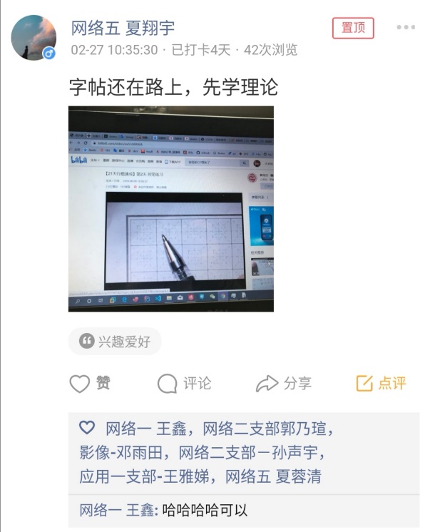活动期间,党员同学们积极响应,截止第一周结束,累计发布了四百多条动态。现从中挑选了一些代表性的打卡记录,和大家一起分享。