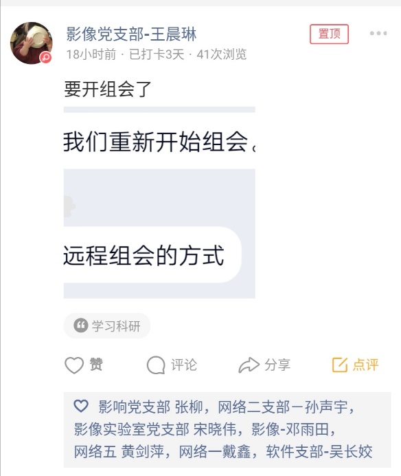 计算机学院研究生各党支部于2月24日发起了“SEU计算机学院研究生党日活动”线上打卡活动,以倡导广大研究生党员同学居家进行学习科研等活动,养成良好的生活习惯,分享每日生活中的小快乐。