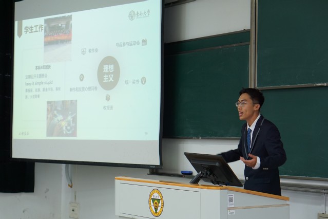 紧接着,大会主持人强调了选举与投票规则,鼓励参会代表珍惜权利、明晰义务、履行职责,选举出令同学满意的学院研究生会主席团人选。新一届主席团成员候选人按照抽签顺序向大会作竞选演讲,各位候选人向全体代表展示了自己相关的工作经历,就研究生会未来的发展提出了自己的设想,并回答了与会代表的提问。