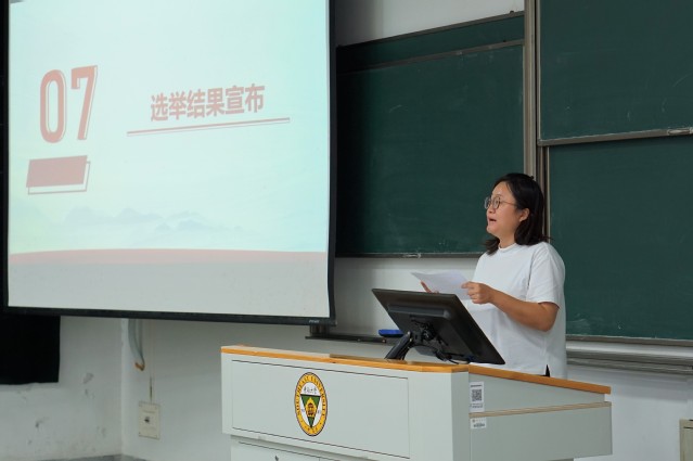 最后,主监票人、院团委书记魏敏娜老师公布了各位候选人的最终得票情况,并宣布了选举结果:周诗琪、俞瑜、胡昱三位同学当选新一届研究生会主席团成员。