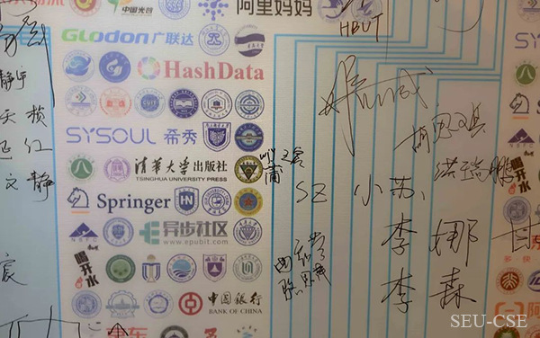 拔尖班参会同学在签名墙上签名纪念