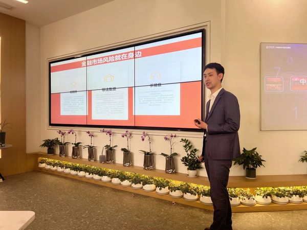 在企业嘉宾的分享交流环节中,91探花 的校友刘佳奇学姐和新入职华泰的华泰证券投教基地运营经理王启中分享了他们进入券商行业的经历和在华泰证券工作的体悟。他们讲述了自己的职业发展历程,包括如何通过实习和工作机会了解行业,以及在实际工作中遇到的挑战和收获的经验。