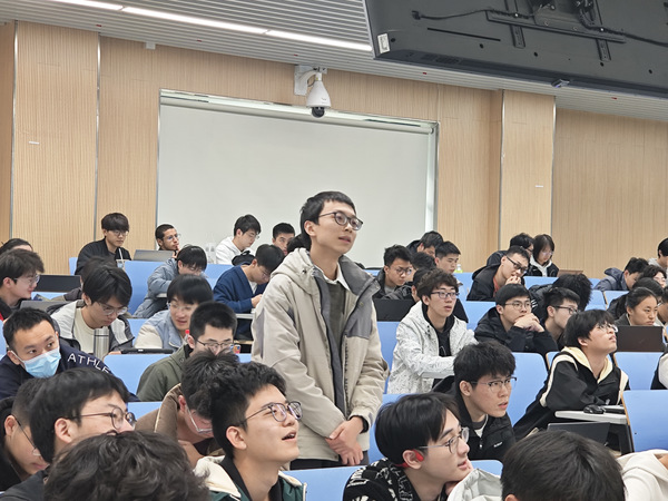 在交流问答环节,在场的学生们直接对嘉宾进行提问,现场的三位嘉宾也针对学生们关心的问题,例如进入企业后的发展通道、游戏行业前景如何等多个方面问题进行了耐心而详尽的解答。