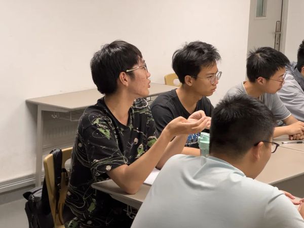 接着其他同学也陆续发表了自己的看法。团支书朱佳航表示大一大二课程容量不均衡,建议将部分基础课程提前开展。姚泓宇同学提出班级学生过于分散不利于学习交流等。刘益杉、汪骏宇、蒲京等同学也在课程学习、兴趣与学习成绩的平衡、人文素养、国际交流、SRTP项目等方面提出了自己的困惑和问题。