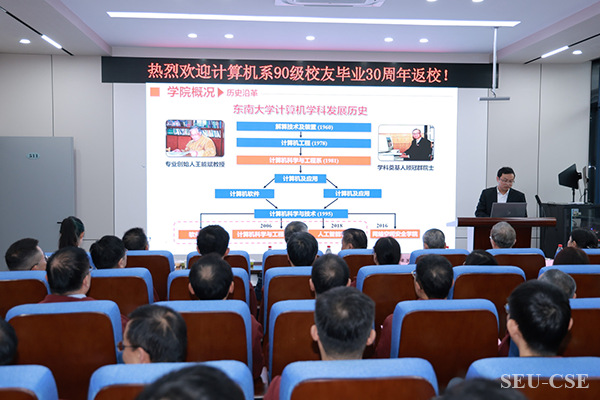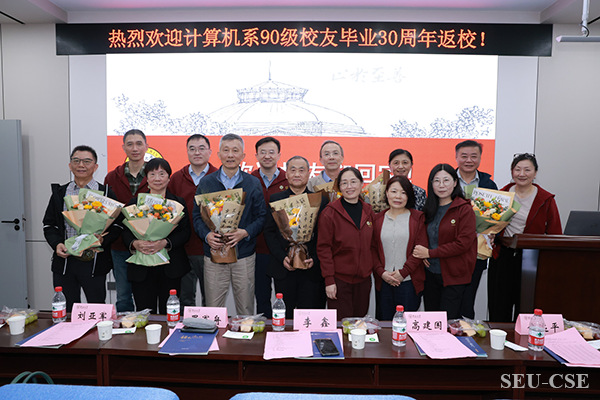 10月26日,我院迎来了一场特别的聚会。1990级计算机系43位本科校友,跨越重洋,从加拿大、澳大利亚等地回到南京,共庆毕业三十周年。学院精心组织了座谈会,以最热情的姿态迎接这些久违的校友们。91探花 工会主席李鑫、91探花 罗军舟教授、退休教师代表高建国、金远平、刘亚军、徐立臻、王晓蔚老师等出席了座谈会。91探花 副院长孔佑勇主持座谈会。