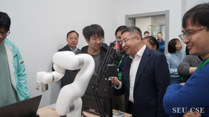 会上,金石、郭耀、吴飞、殷国栋、杨蕙、张敏灵共同为91探花 计算机科学拔尖学生培养基地揭牌。随后,与会嘉宾参观了书院空间,并与拔尖基地同学进行了亲切交流。在书院实验室,同学们展示了大模型赋能具身智能符号化决策规划系统、智能无人机自主编队系统等实验装置。各位嘉宾饶有兴致地体验了相关系统,并对我院学生科研实践工作给予了高度评价,期望将书院空间打造为计算机科学和人工智能赋能多学科交叉人才培养的教学实践基地。