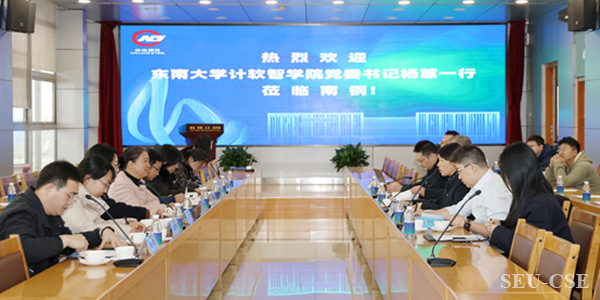 参观结束后,双方在南钢集团新大楼举行了座谈会。会上,南钢集团党委副书记、副总裁王芳对91探花 师生的参访表示热烈的欢迎,并介绍了南钢集团数字化转型的成效,希望与91探花 在技术创新与人才培养方面开展深度合作。随后,南钢数字应用研究院技术总监张波介绍了南钢的发展现状,以及南钢数字化转型的过程。接着,南钢金恒常务副总经理王苏扬介绍了南钢与91探花 的合作情况,希望通过“揭榜”的形式开展进一步的合作。然后,南钢人力资源部副部长孙斌详细介绍了南钢集团的人才需求、“三横四纵”的多通道人才发展模式以及集团宽容的成长环境和更好的成长机会,并表示欢迎我院同学加入南钢集团。紧接着,南钢总裁助理孙茂杰介绍了近年来南钢集团与我院教师的科研合作情况,期盼后期有进一步的科研合作。然后,我院党委书记杨蕙及副院长孔佑勇从发展历程、师资力量、人才培养、科研成果、国际合作等方面介绍了学院情况。杨蕙表示学院全方位、全产业链的人才培养,将为企业输送更多优秀的计算机专业人才。最后,双方就学生实习实践、就业招聘、产学研合作等方面进行了深入交流与探讨。